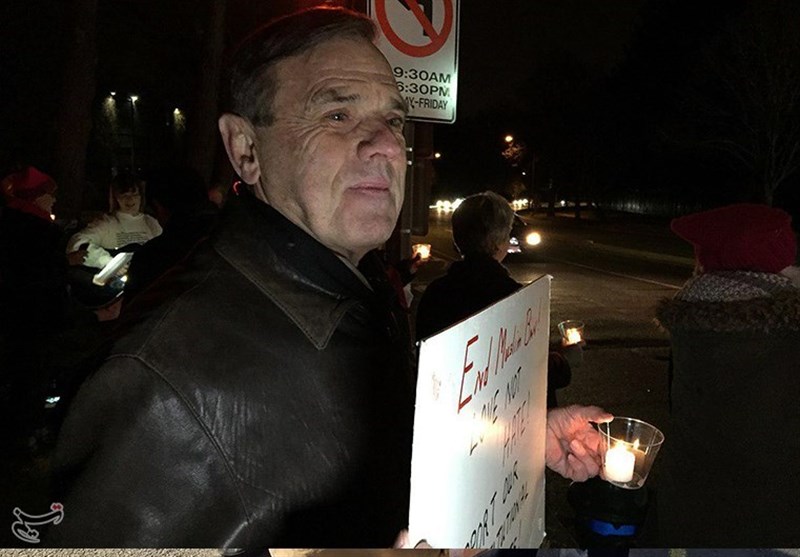 معترضان در مخالفت با سیاستهای نژادپرستانه و تبعیضآمیز دولت آمریکا در جلوگیری از ورود مسلمانان به این کشور، مقابل منزل معاون ترامپ فریاد میزدند: «نه ممنوعیت، نه دیوار »، «مسلمانان خوش آمدند»«ما در کنار مسلمانان خواهیم ایستاد» ,«مساوات خود قانون است »و «در این سرزمین بزرگ ممنوعیتی نباید برای مسلمان باشد در غیر این صورت ما در مقابل شما خواهیم ایستاد».