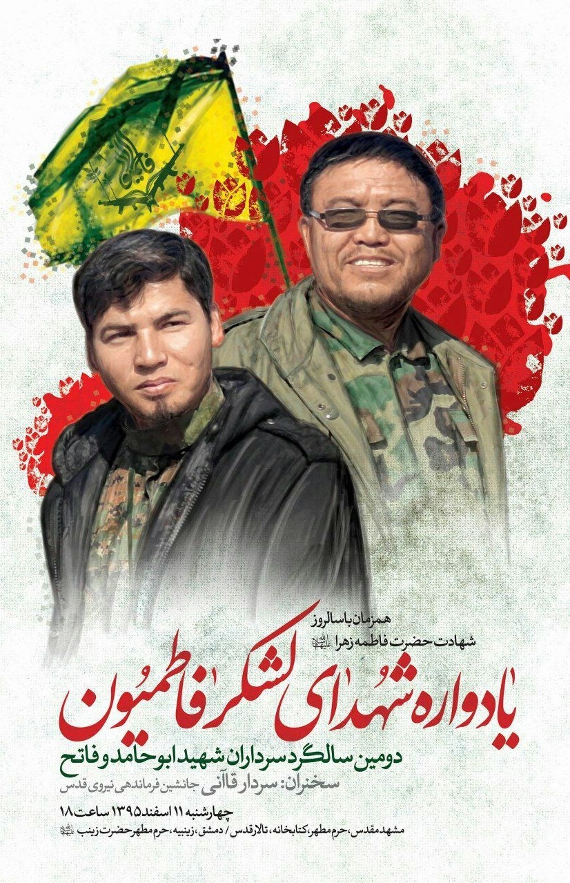 به گزارش باشگاه خبرنگاران پویا، یادواره شهدای لشکر فاطمیون و دومین سالگرد شهادت فرماندهان فاطمیون ابوحامد و فاتح همزمان با ایام شهادت حضرت فاطمه زهرا(س) برگزار میشود.