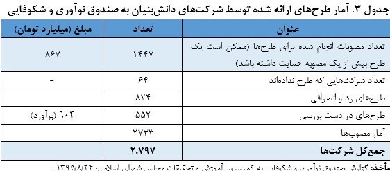 آمار طرحهای ارائه شده توسط شرکتهای دانشبنیان به صندوق نوآوری و شکوفایی در جدول زیر ارائه شده است: