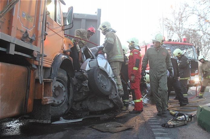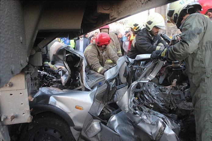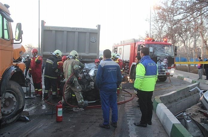 تصادف زنجیره‌ای هشت خودرو در بزرگراه بسیج منجر به متلاشی شدن خودروی سمند و مرگ راننده آن شد.