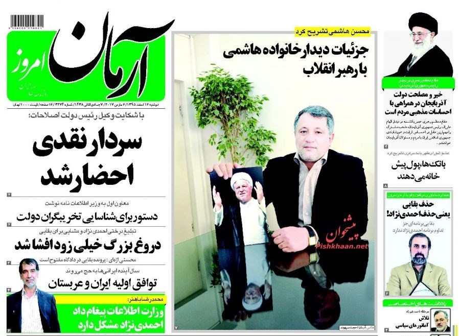 تصاویر صفحه اول روزنامه‌های دوشنبه 16 اسفند