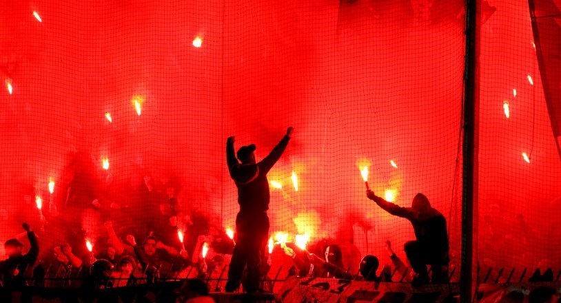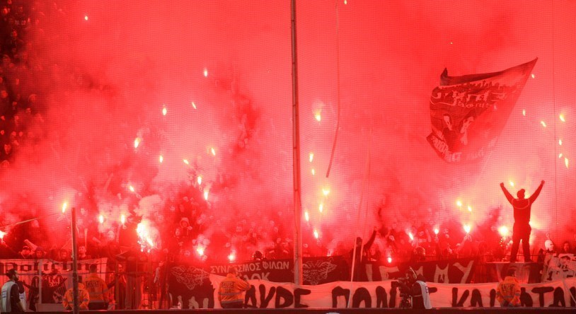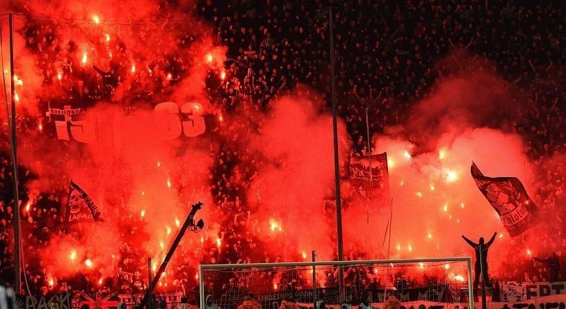 تصاویری از فوران آتش هواداران پائوک در ورزشگاه تومبا هنگام بازی با المپیاکوس را مشاهده میکنید: