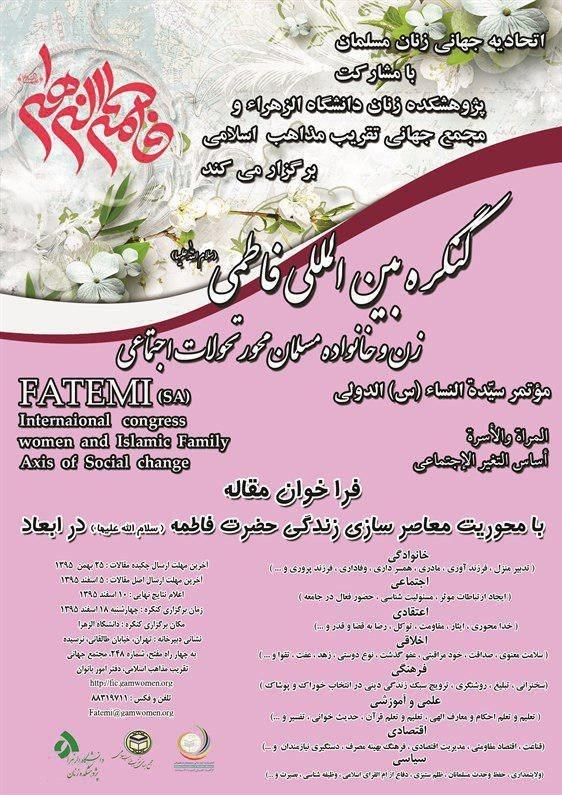 این کنگره با محوریت معاصرسازی زندگی حضرت زهرا(س) در ابعاد خانوادگی(تدبیر منزل، فرزندآوری، مادری، همسرداری، وفاداری)، اجتماعی(ایجاد ارتباط مؤثر، مسئولیتشناسی، حضور فعال در جامعه)، اعتقادی(خدامحوری، ایثار، مقاومت، توکل و رضا به قضا و قدر)، اخلاقی(سلامت معنوی، صداقت، عفو، زهد، عفت و تقوا)، فرهنگی(روشنگری، ترویج سبک زندگی دینی در انتخاب خوراک و پوشاک)، علمی و آموزشی(تعلیم و تعلّم احکام و معارف الهی، حدیثخوانی)، اقتصادی(اقتصاد مقاومتی، قناعت،دستگیری از نیازمندان) و سیاسی( ولایتمداری، حفظ وحدت میان مسلمانان، بصیرت و ظلمستیزی)، چهارشنبه 18 اسفندماه در دانشگاه الزهرا(س) برگزار میشود.