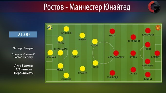 به گزارش خبرگزاری تسنیم، روستوف روسیه از ساعت 21:30 امشب (پنجشنبه) در بازی رفت مرحله یکهشتم نهایی لیگ اروپا میزبان منچستریونایتد است و دیدار برگشت نیز 26 اسفند در ورزشگاه اولدترافورد برگزار خواهد شد.