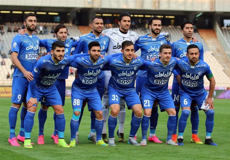 بازیکنان استقلال با لباس شخصی در وسط زمین کنار یکدیگر عکس یادگاری انداختند.