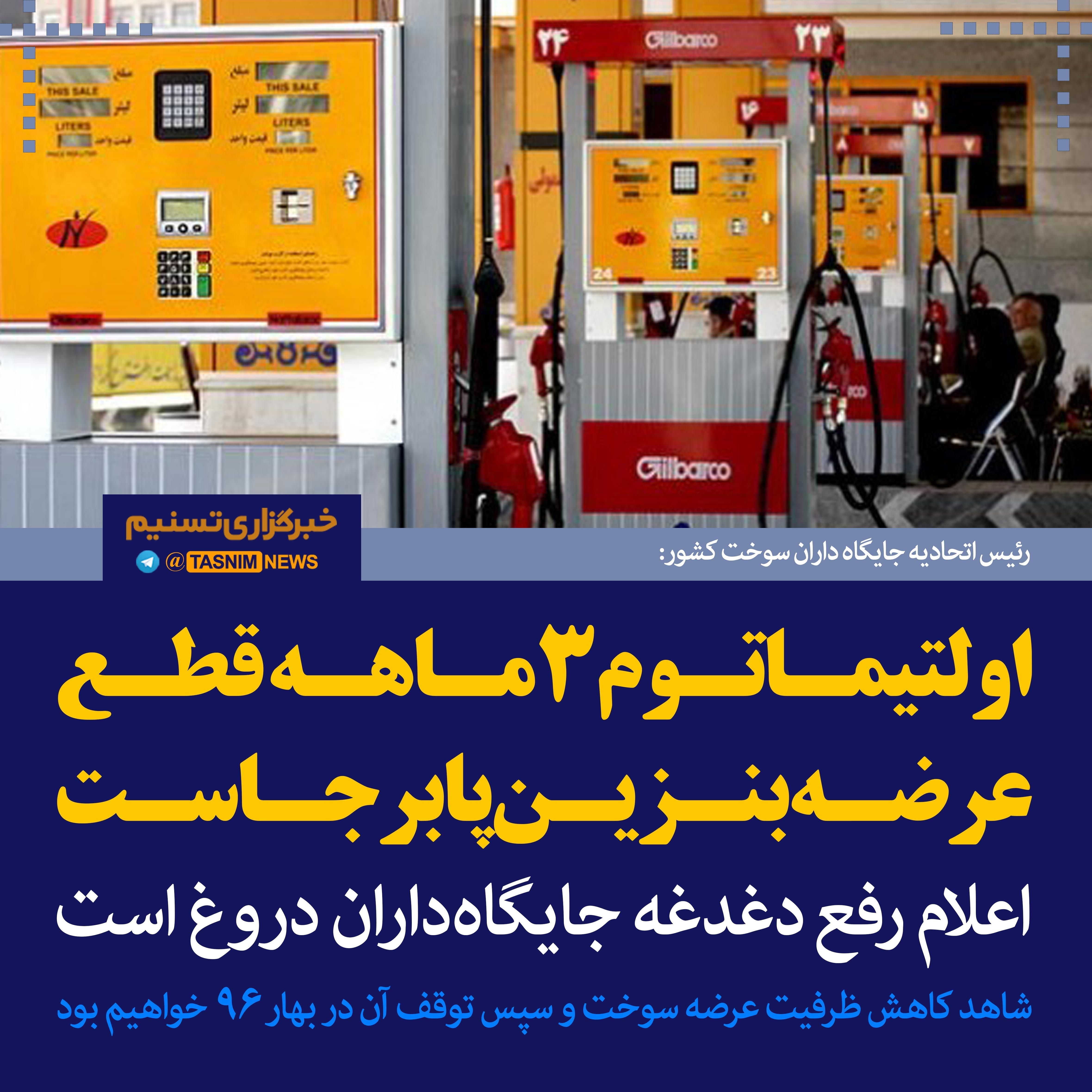 فتوتیتر/رئیس اتحادیه جایگاه‌داران سوخت:اولتیماتوم 3ماهه قطع عرضه بنزین پابرجاست