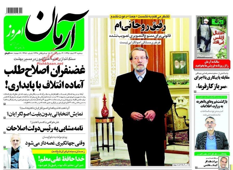 تصاویر صفحه اول روزنامه‌های سه‌‎شنبه 24 اسفند