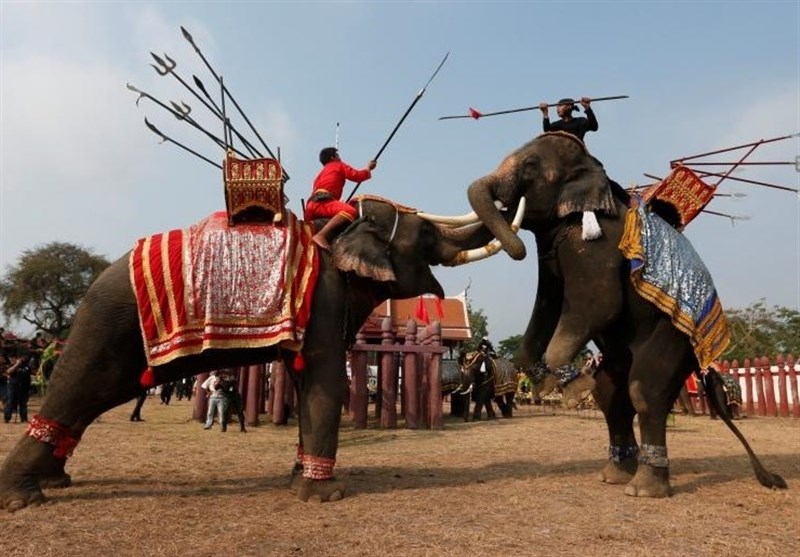 مبارزه مردان فیل سوار در شهر باستانی آیات تایای در آیین روز ملی فیل در تایلند برگزار شد.