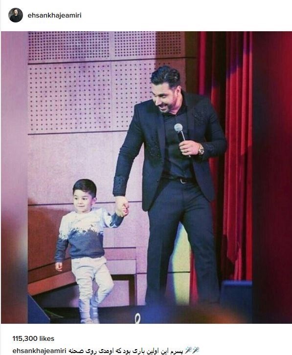 احسان خواجه امیری در اینستاگرامش عکسی از اولین حضور پسرش روی صحنه ی آخرین کنسرتش در سال 95 منتشر کرد. او در این کنسرت قطعه ای را به یاد افشین یداللهی خواند.
