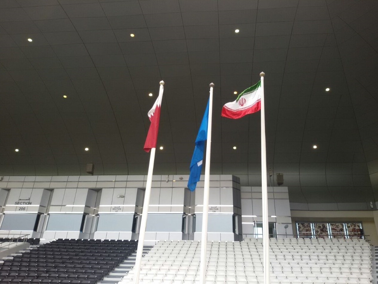 * در ورزشگاه پرچم ایران و قطر نصب شده است.