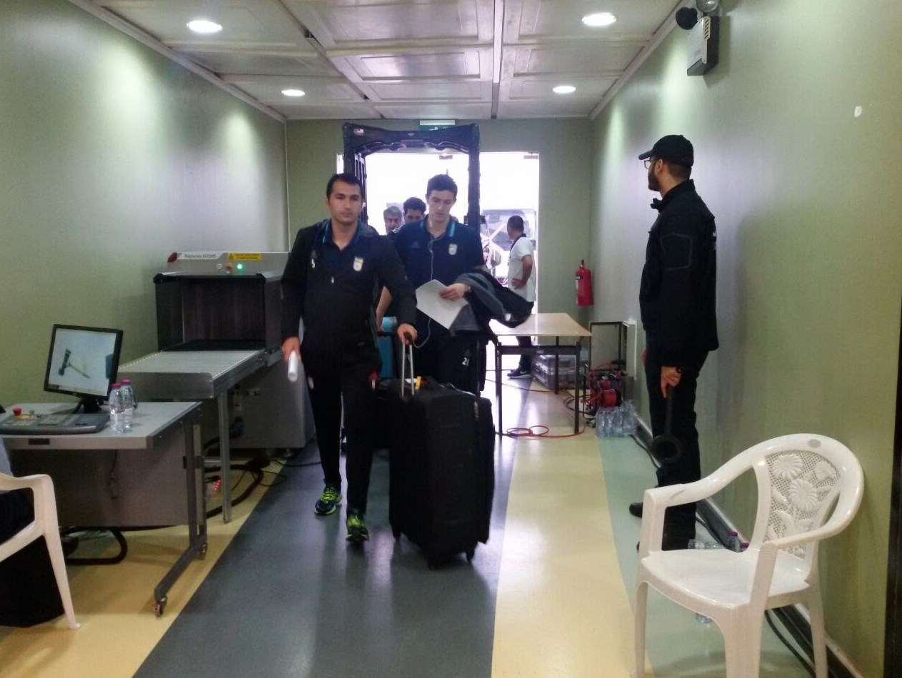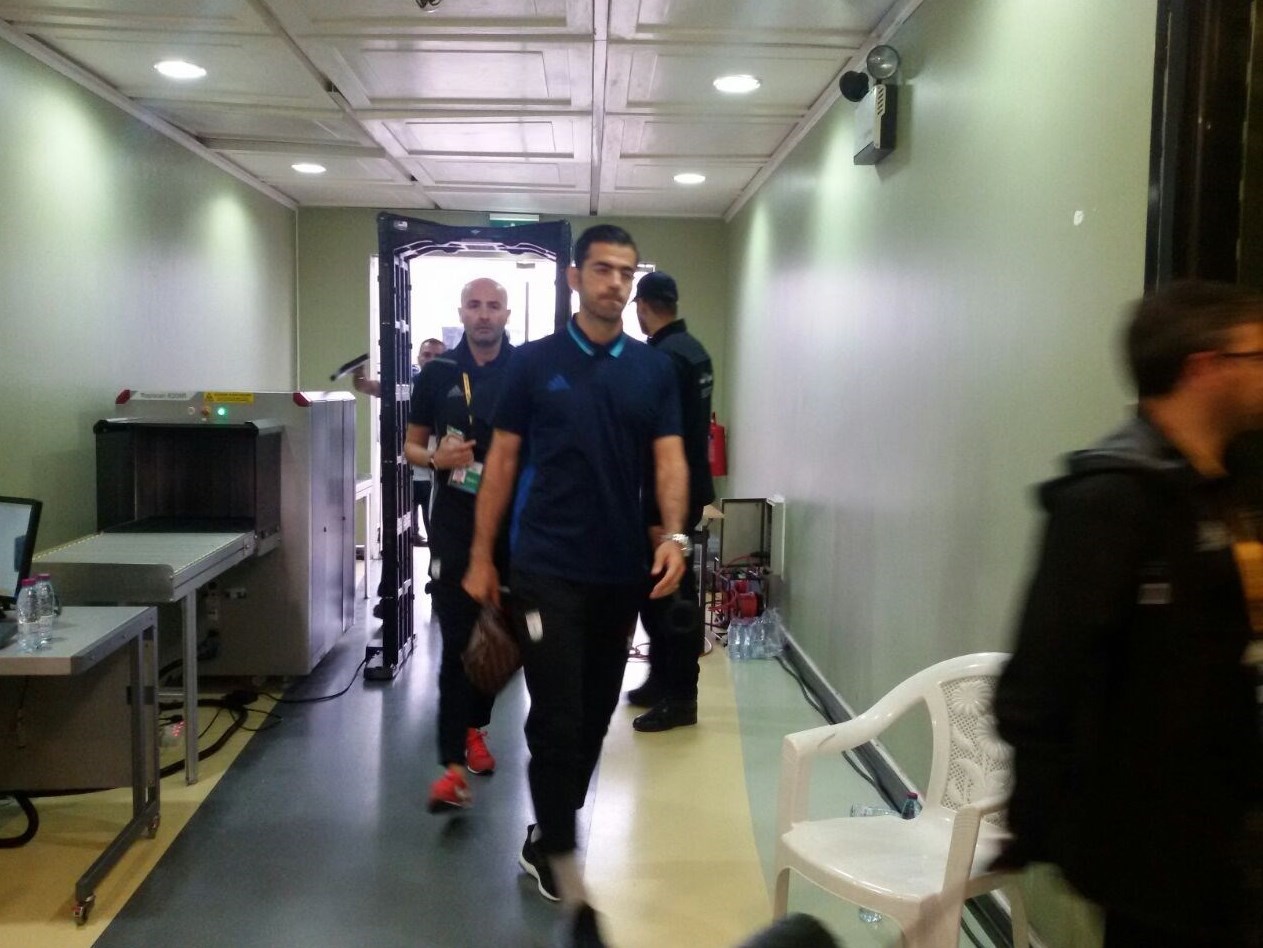 * بخشی از بازیکنان تیم ملی پس از ورود به ورزشگاه در زمین حاضر شدند تا با شرایط ورزشگاه آشنا شوند.