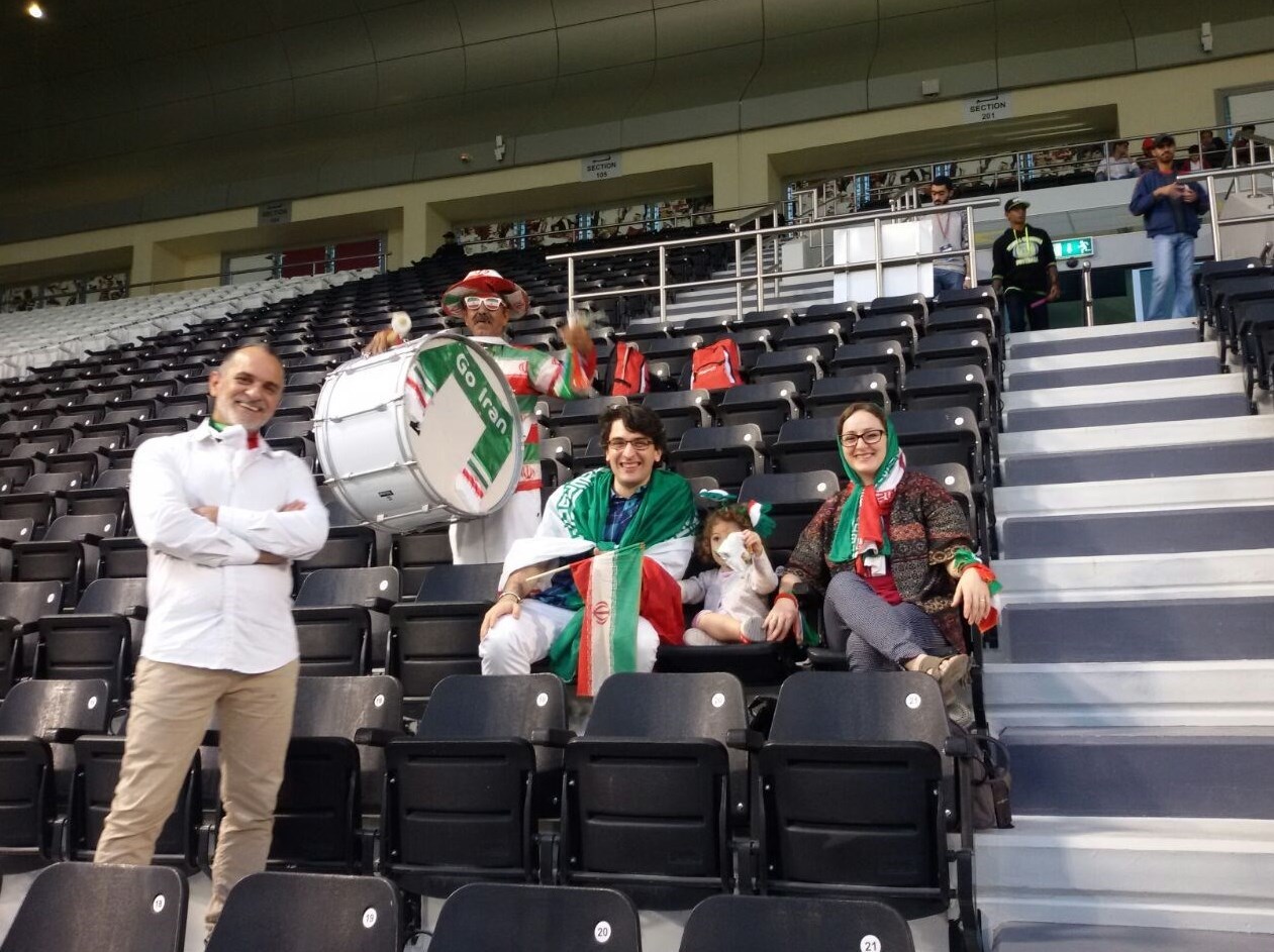 * هواداران ایرانی 90 دقیقه مانده به آغاز بازی وارد ورزشگاه شدند که مشوقان فدراسیون فوتبال در نظمدهی آنها کمک کردند. تماشاگران با طبل و شیپور ایران را تشویق کردند تا پر شوری خود را نشان دهند. در حال حاضر حدود 100 ایرانی در ورزشگاه هستند.