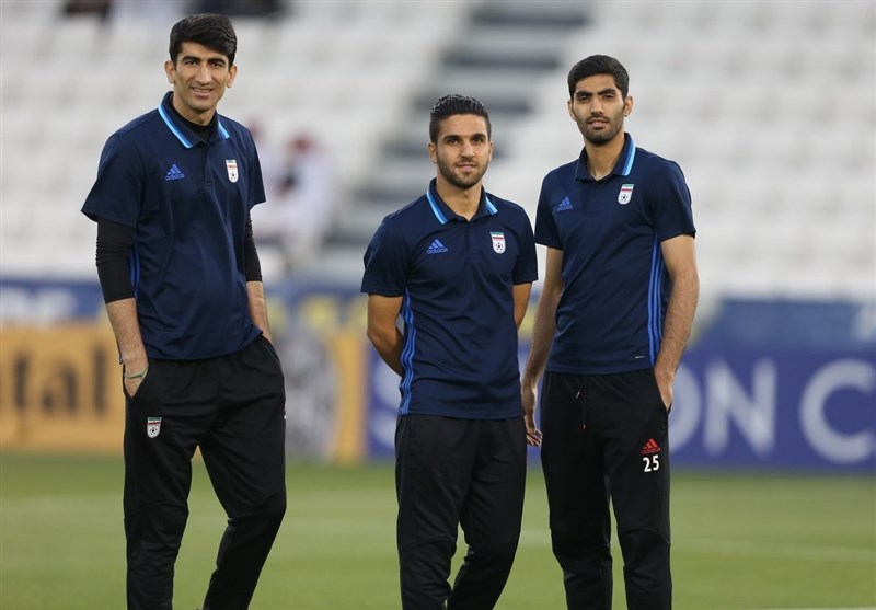 * رامین رضاییان در کنار علی کریمی از روی نیمکت نظارهگر گرم کردن بازیکنان تیم ملی بود.