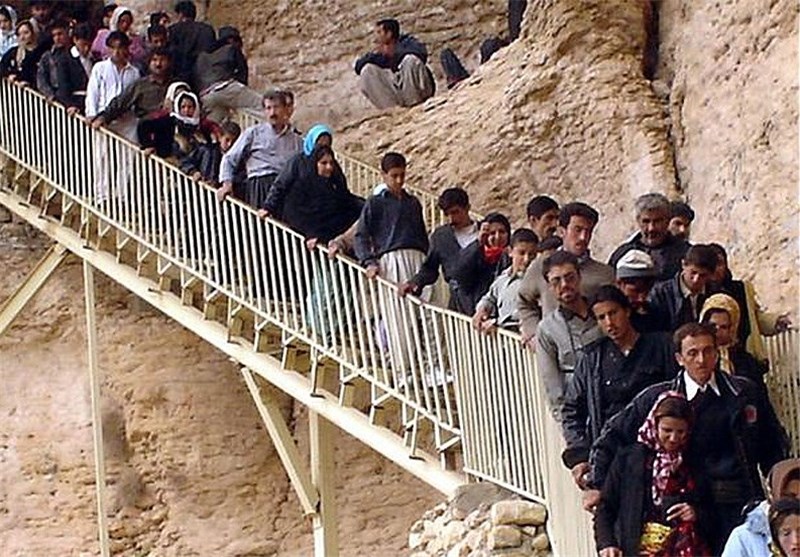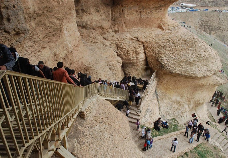 در راهرو ارتباطی طبقه اول به دوم غار، یادگاری از «خانیکف مستشرق روسی» بر دیواره راهرو کنده شده که حکایت از بازدید ایشان در سال 1917 میلادی دارد.