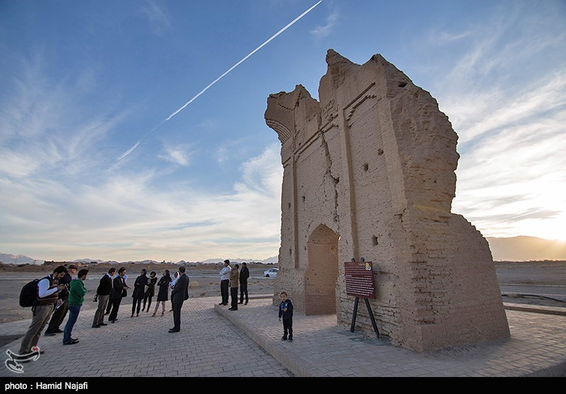 عده ای معتقدند این بنا که هزار سال قدمت دارد، گوشهای از دروازه خروج سریزد و در واقع ورودی به سمت شهر یزد بوده است.، کمی آن سوتر از این دروازه، کاروانسرایی قرار دارد که به جا مانده از دوران صفویان است، این بنا ساختمانی است آجری با سردری شاهنشین که سال 1380 هجری شمسی با شماره 3850 در سازمان میراث فرهنگی به ثبت رسیده است.