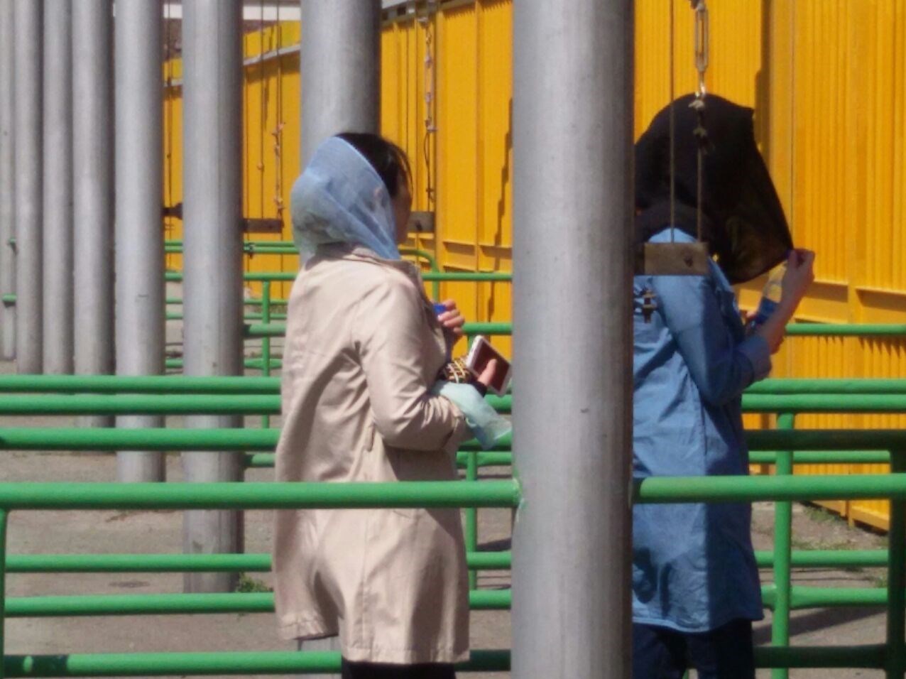 * تماشاگران چینی در قسمت شمالی ورزشگاه جا داده شده‌اند. چند تماشاگر خانم چینی هم بدون مشکل وارد ورزشگاه شدند.
