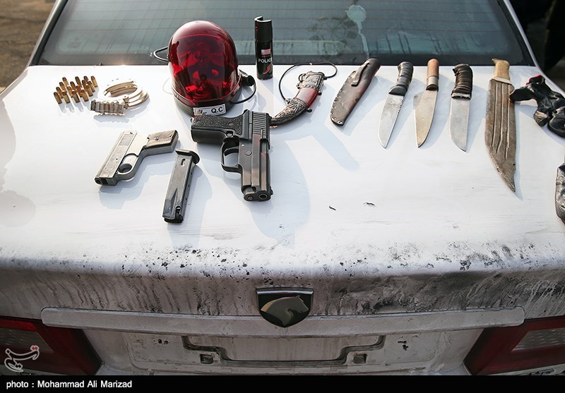 از اعضای این باند دو قبضه سلاح کمری همراه با 18 فشنگ جنگی، دو عدد شوکر، افشانه دفاع شخصی و تعدادی قمه و چاقو کشف و ضبط شد، دو نفر از اعضای این باند نیز بعدازظهر سوم دی ماه گذشته بهاتهام شرب خمر بازداشت شده بودند و پس از بازداشت مشخص شد که از اعضای باند سرقت مسلحانه پایتخت هستند، اعضای این باند از ساعت 12 شب به بعد با یک دستگاه سمند سفیدرنگ که پلاک تقلبی داشت در افسریه تهران شروع به سرقت میکردند و پس از سرقت در جنوب شرق تهران سراغ سوپرمارکتهای شمال غربی پایتخت در محدوده اتوبان شهید همت میرفتند و سرقت میکردند.
