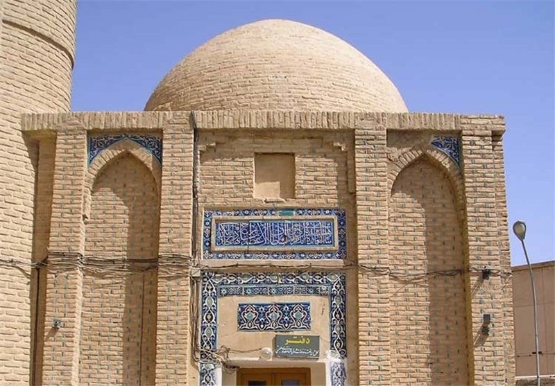 در دو طرف درب ورودی دو طاقنما که بالای آنها دو طاقچه مربع شکل است، ایجادشده و در طاقنمای وسطی که عریضتر است در ورودی قرارگرفته است.