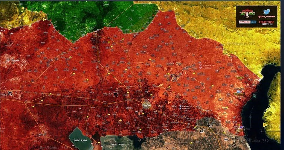 از دیر الزور در شرق هم خبر میرسد که محور جنوبی این شهر شامل المقابر، المعامل و شرکت برق شاهد درگیریهای سنگین نیروهای ارتش با تروریستهای داعشی است و جنگندههای ارتش هم مواضع داعشیها را در جنوب فرودگاه و کوههای الثرده بمباران میکنند که شمار زیادی به هلاکت رسیدهاند.