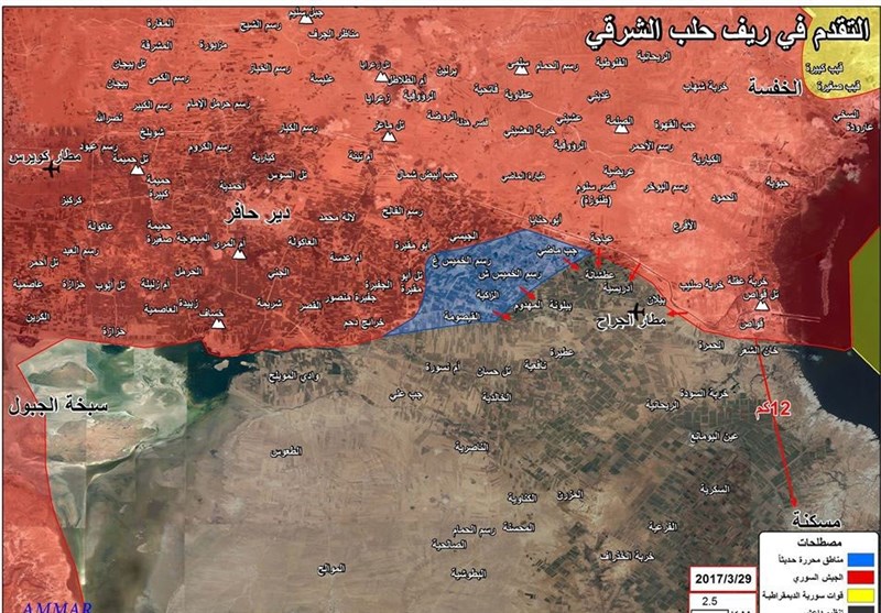 یک منبع نظامی سوری آزادسازی شهر دیرحافر و 27 شهرک و روستای اطراف آن و تامین امنیت 24 کیلومتر از بزرگراه حلب به الرقه را مورد تاکید قرار داد .