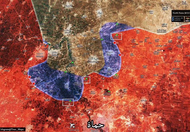 این در حالی است که جنگندههای سوری و روسی دهها بار مواضع تروریستها را در محورهای «بریدیج،المغیر،بلحسین، زور الحیصة،المحروقة واللطامنة و اطراف معردس» بمباران کردند.