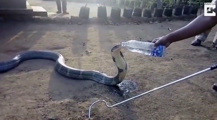ویدئوی ذیل صحنه نوشیدن آب این مار خطرناک را از بطری که یکی از روستاییان شجاع در دست دارد نشان میدهد.