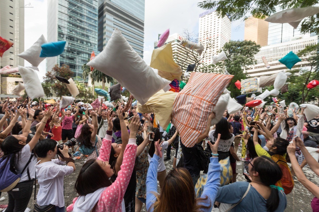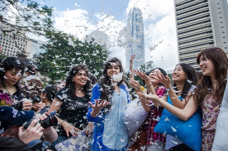 بر اساس گزارش یورونیوز، در این مراسم دهها نفر با پوششهای مختلف از جمله پیژامه و با در دست داشتن بالش در هنگ کنگ شرکت کردند.