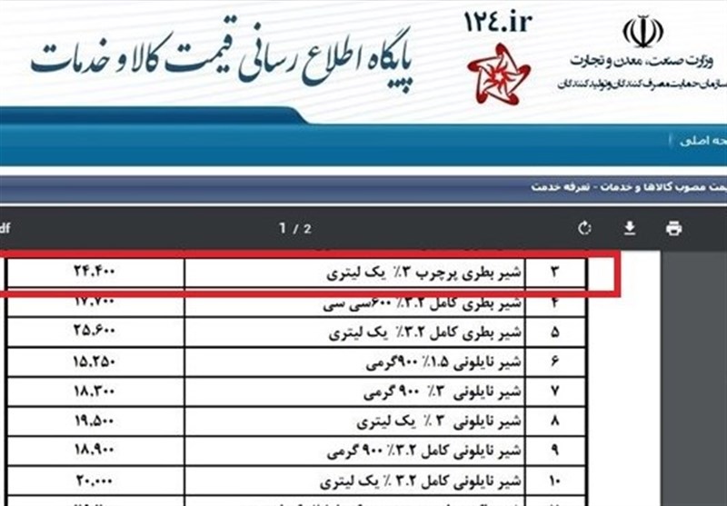 بنابراین گزارش آخرین قیمت مصوبی که برای هر لیتر شیر بطری پرچرب یک لیتر در نظر گرفتهشده و بر روی پایگاه اطلاعرسانی کالا و خدمات گذشته شده بود 2 هزار و 440 است که در سال گذشته 2 هزار و 500 تومان به همراه 54 میلیلیتر کمفروشی به فروش میرسید که قیمت این محصول در سال جاری توسط برند یادشده به 2 هزار و 700 تومان رسیده است.