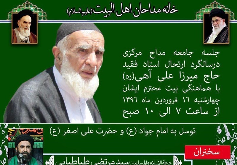 به گزارش خبرنگار فرهنگی باشگاه خبرنگاران پویا، مراسم نکوداشت مرحوم «علی آهی» شاعر آئینی معاصر چهارشنبه 16 فروردین ماه 96 در خانه مداحان اهلالبیت(ع) برگزار میشود.