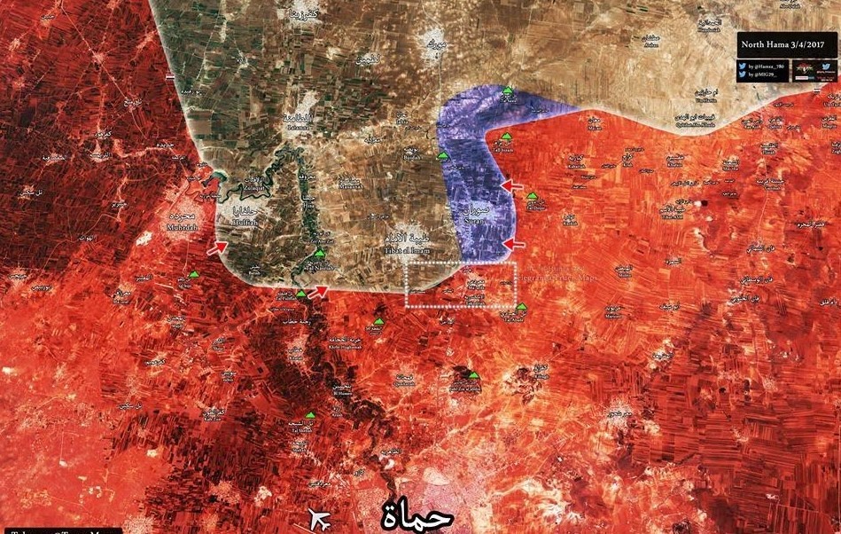 در حماه هم نیروهای ارتش به پیشروی خود در حومه شمالی ادامه میدهند و توانستند شهرکهای «معردس و الاسکندریة» در جنوب شهر «صوران» را پس از درگیریهای شدید با تروریستهای تکفیری آزاد کنند که در نتیجه آن دهها تروریست باند موسوم به هیئة تحریر الشام (جبهه النصره) و گروههای الجیش الحر به هلاکت رسیدند.