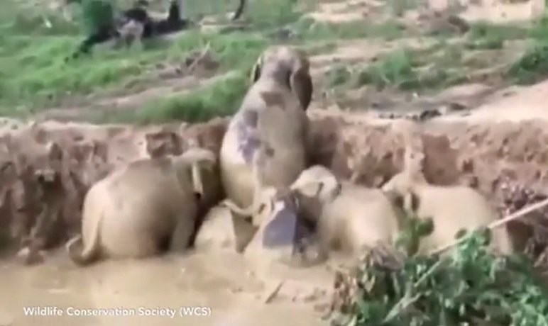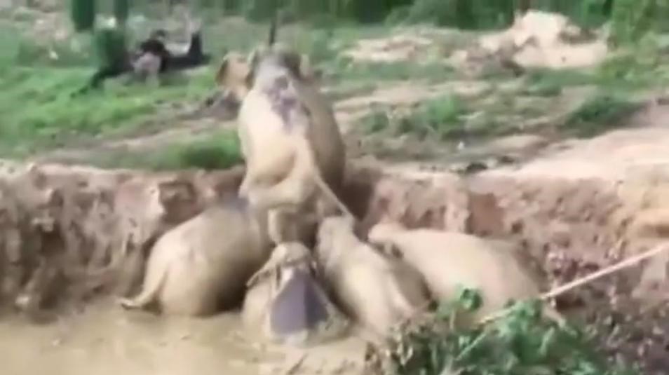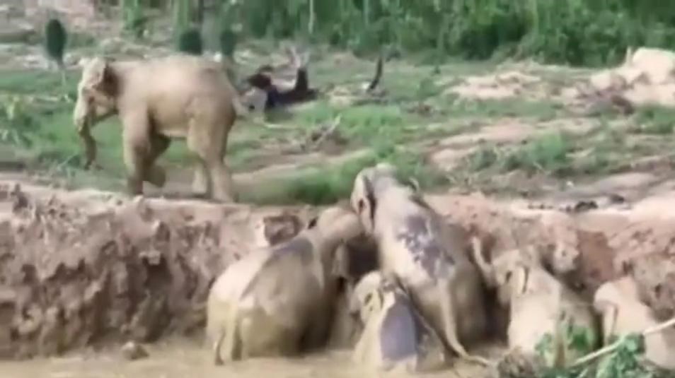 بر اساس گزارش thesun، ماجرا از آنجا شروع شد که گروهی فیل برای نوشیدن آب و استحمام وارد یک گودال پر از آب شدند اما بعد از آنکه تصمیم گرفتند از گودال خارج شوند با ارتفاع زیاد گودال مواجه شدند.