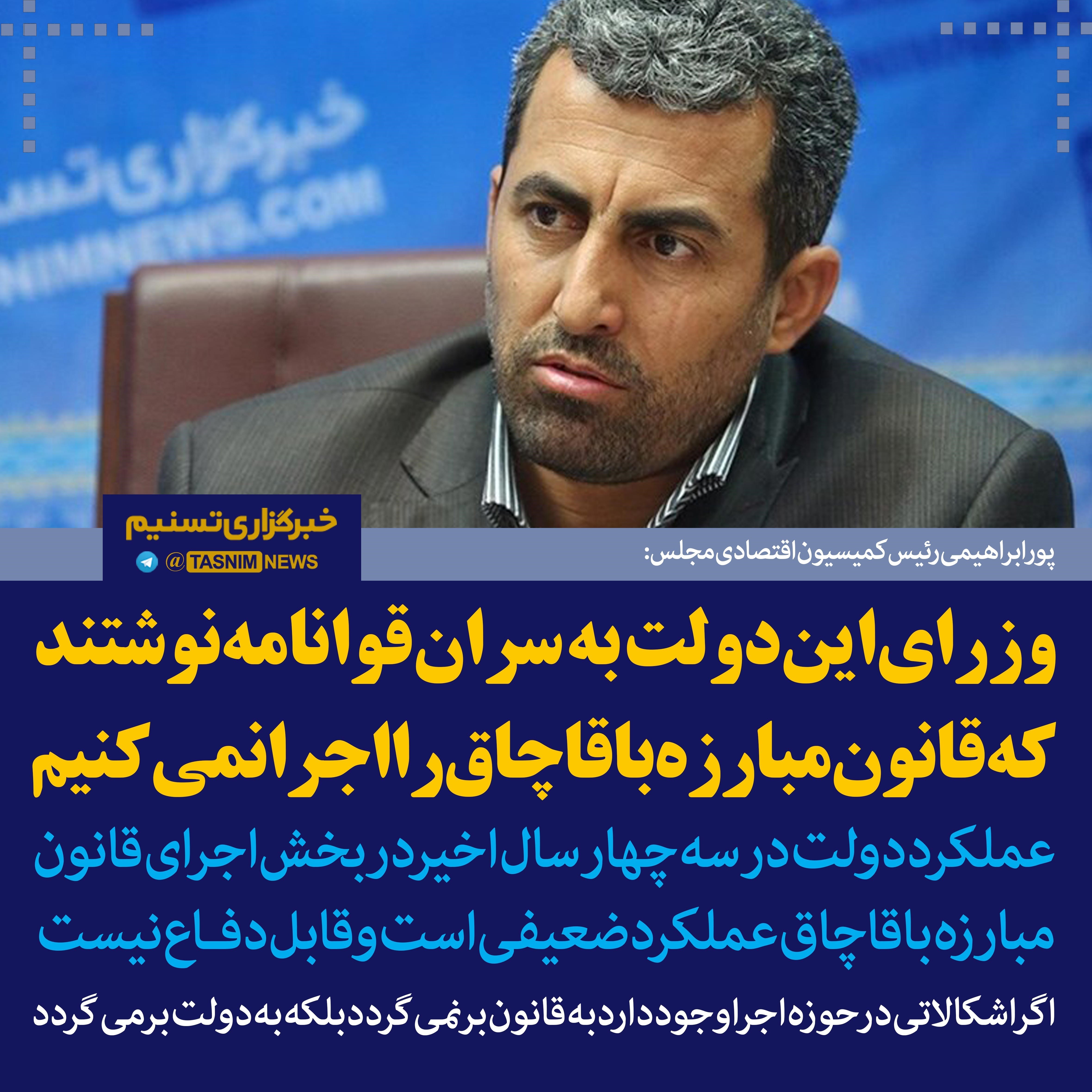 فتوتیتر/پورابراهیمی: وزرای این دولت به سران قوا نامه نوشتند که "قانون مبارزه با قاچاق را اجرا نمی‌کنیم"