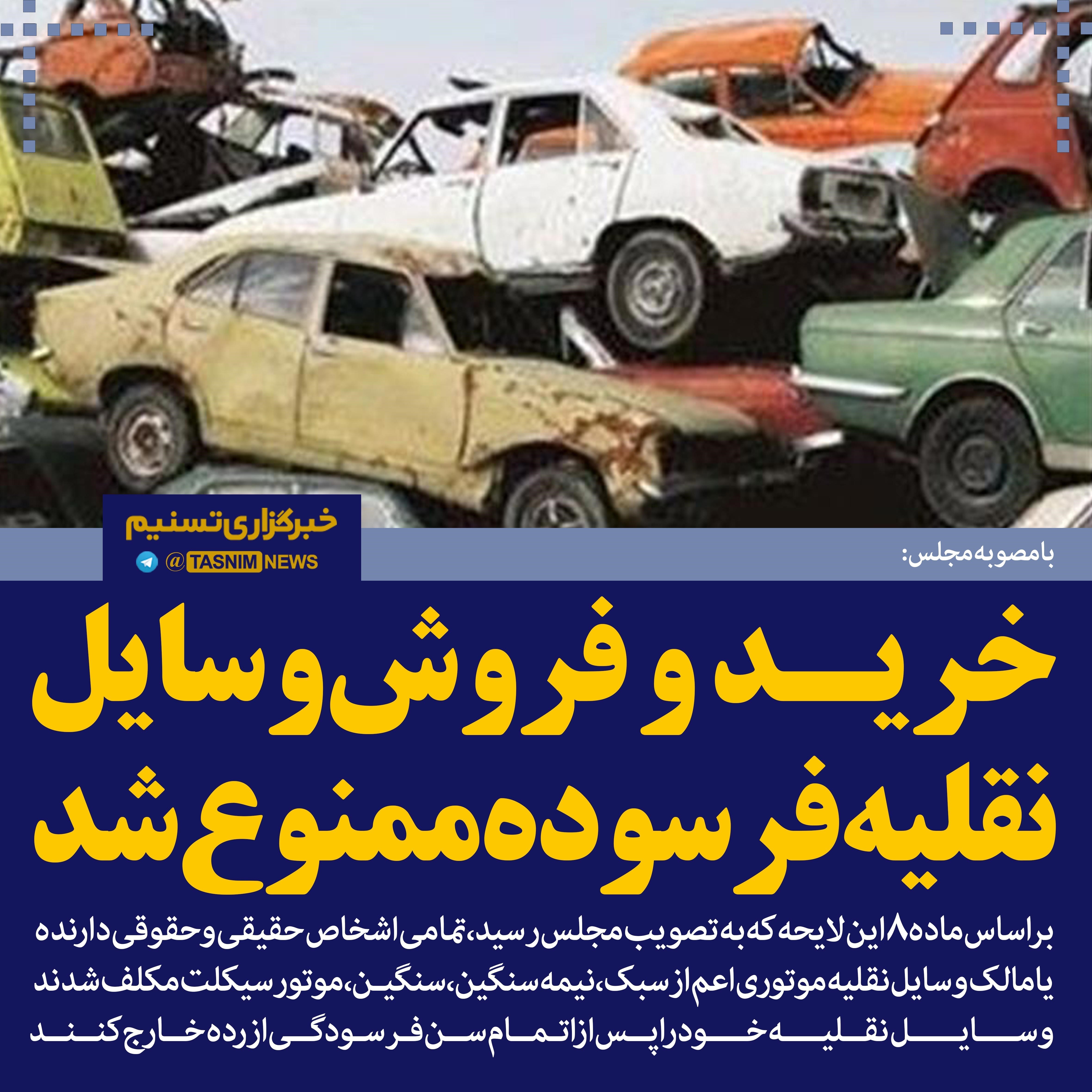 نمایندگان مجلس شورای اسلامی خرید و فروش خودروهای فرسوده را ممنوع کردند.