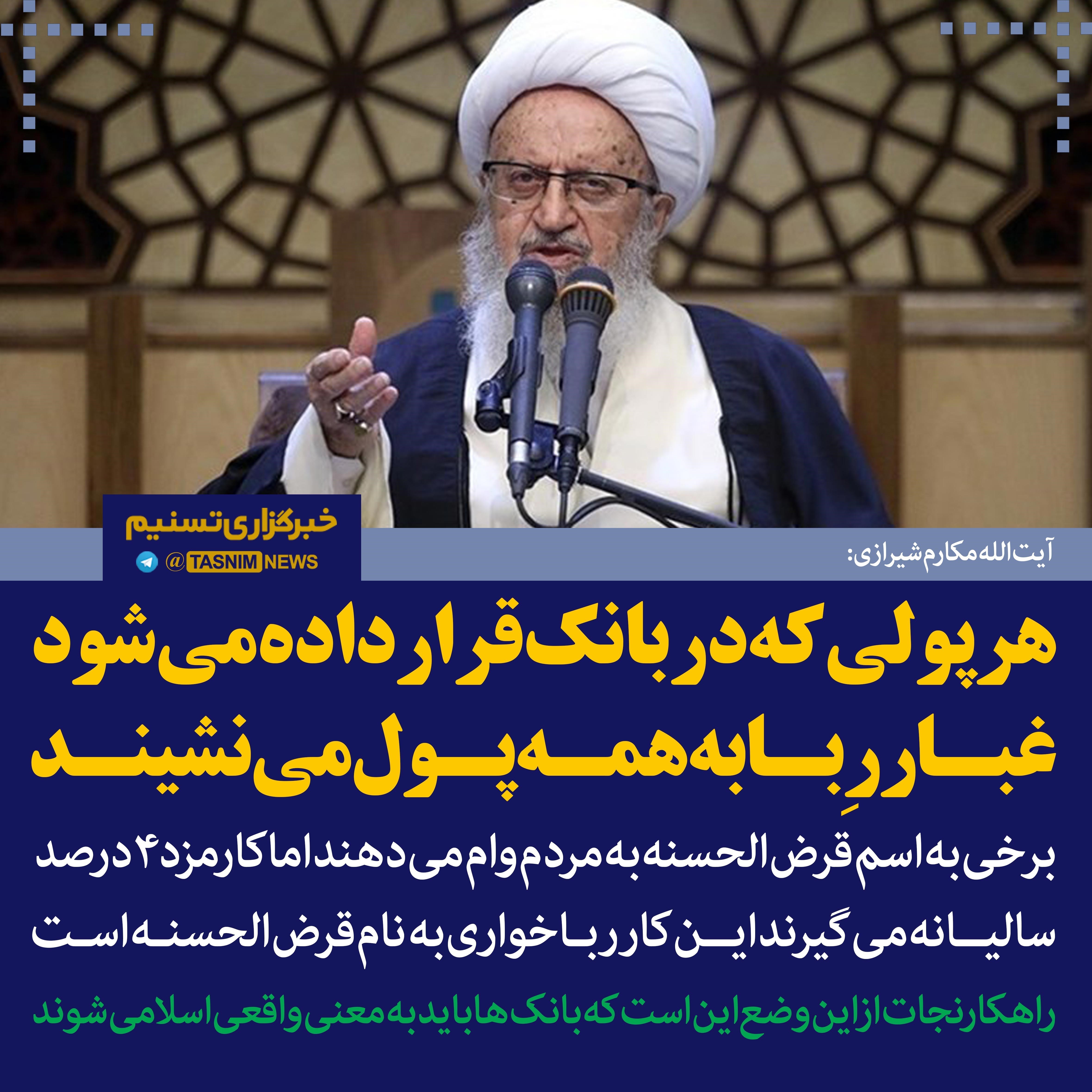 فتوتیتر/آیت الله مکارم شیرازی:هر پولی که در بانک قرار داده می‌شود غبار ربا به همه پول می‌نشیند