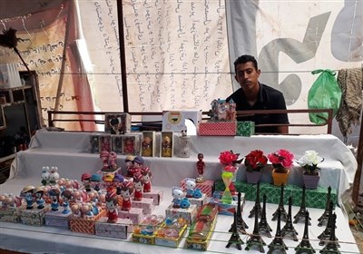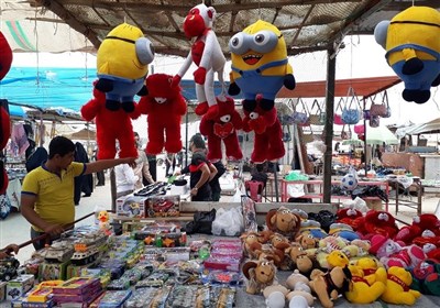 جوانان اروندکناری در این غرفهها اقلام مختلفی از جمله پارچه، اسباببازی، لوازم برقی، لباسهای زنانه، مردانه و بچهگانه را به فروش میرسانند.