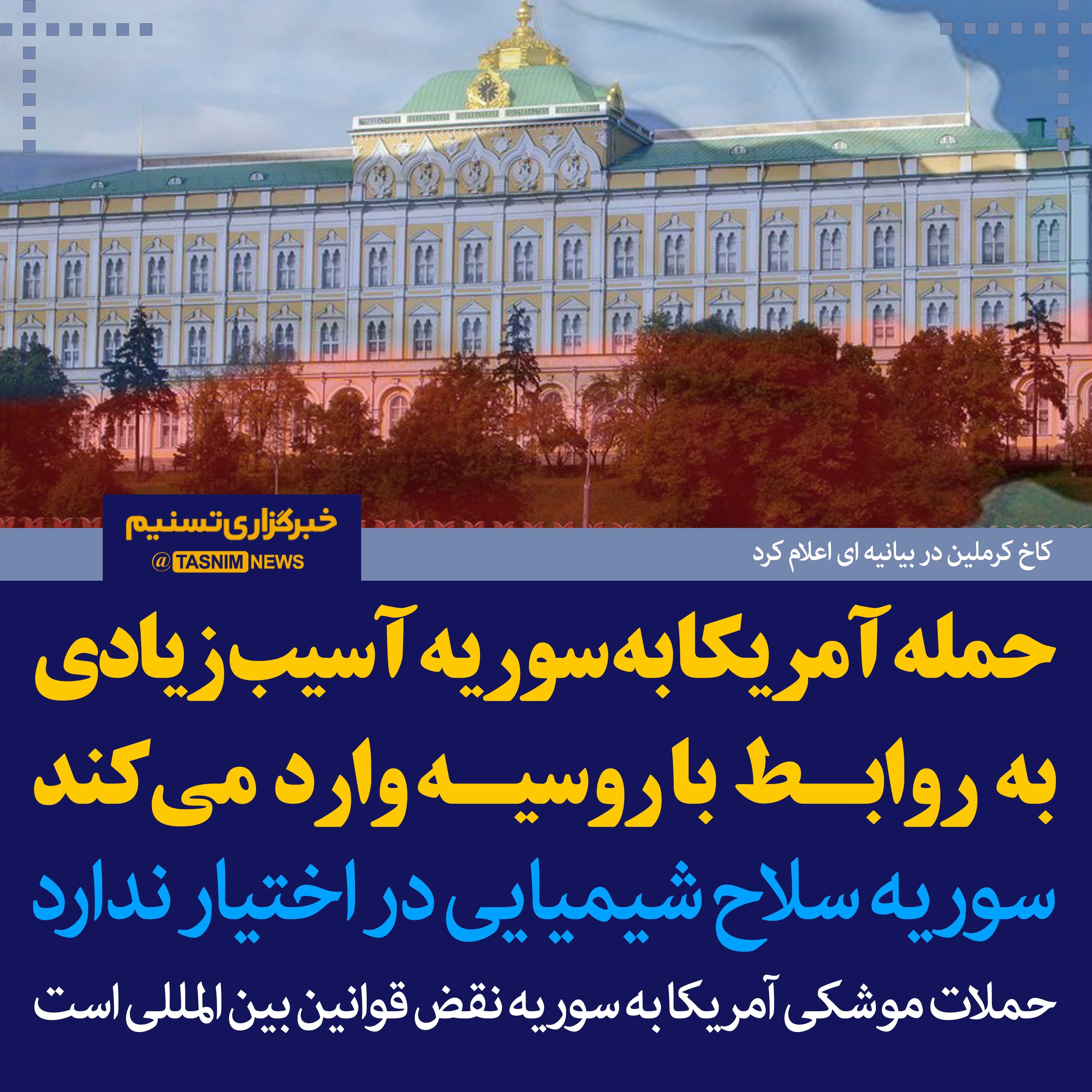 کاخ کرملین تاکید کرد که حملات موشکی بامداد امروز آمریکا به پایگاهی در سوریه زیان زیادی به روابط واشنگتن با روسیه وارد می‌کند.