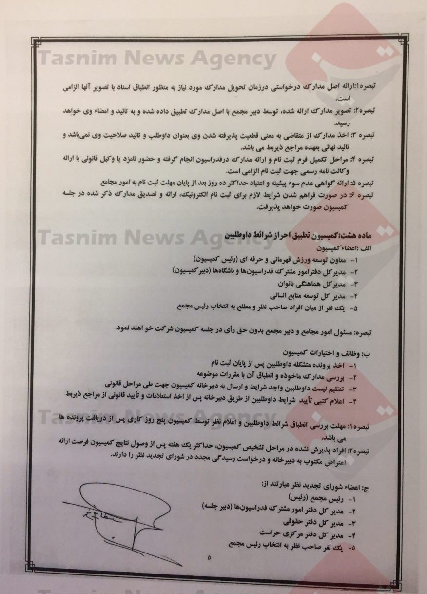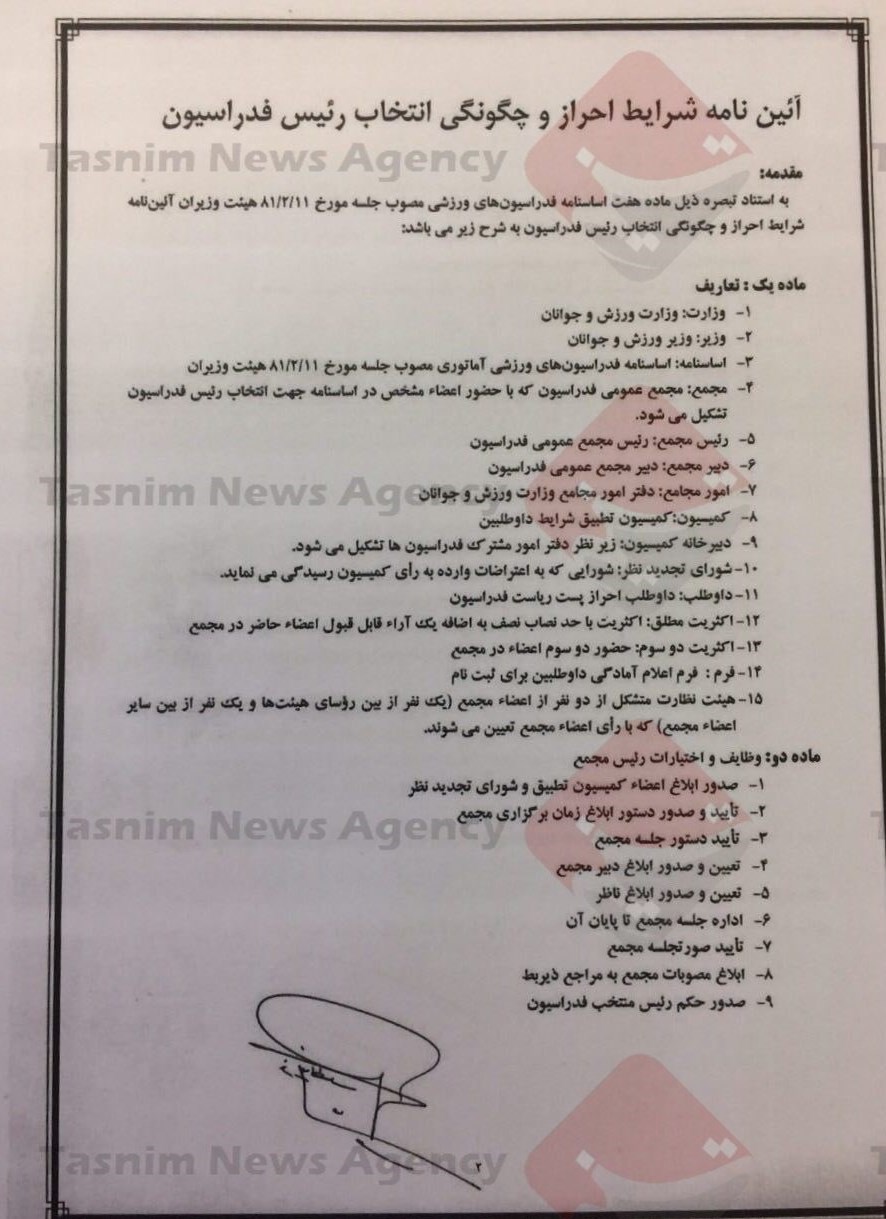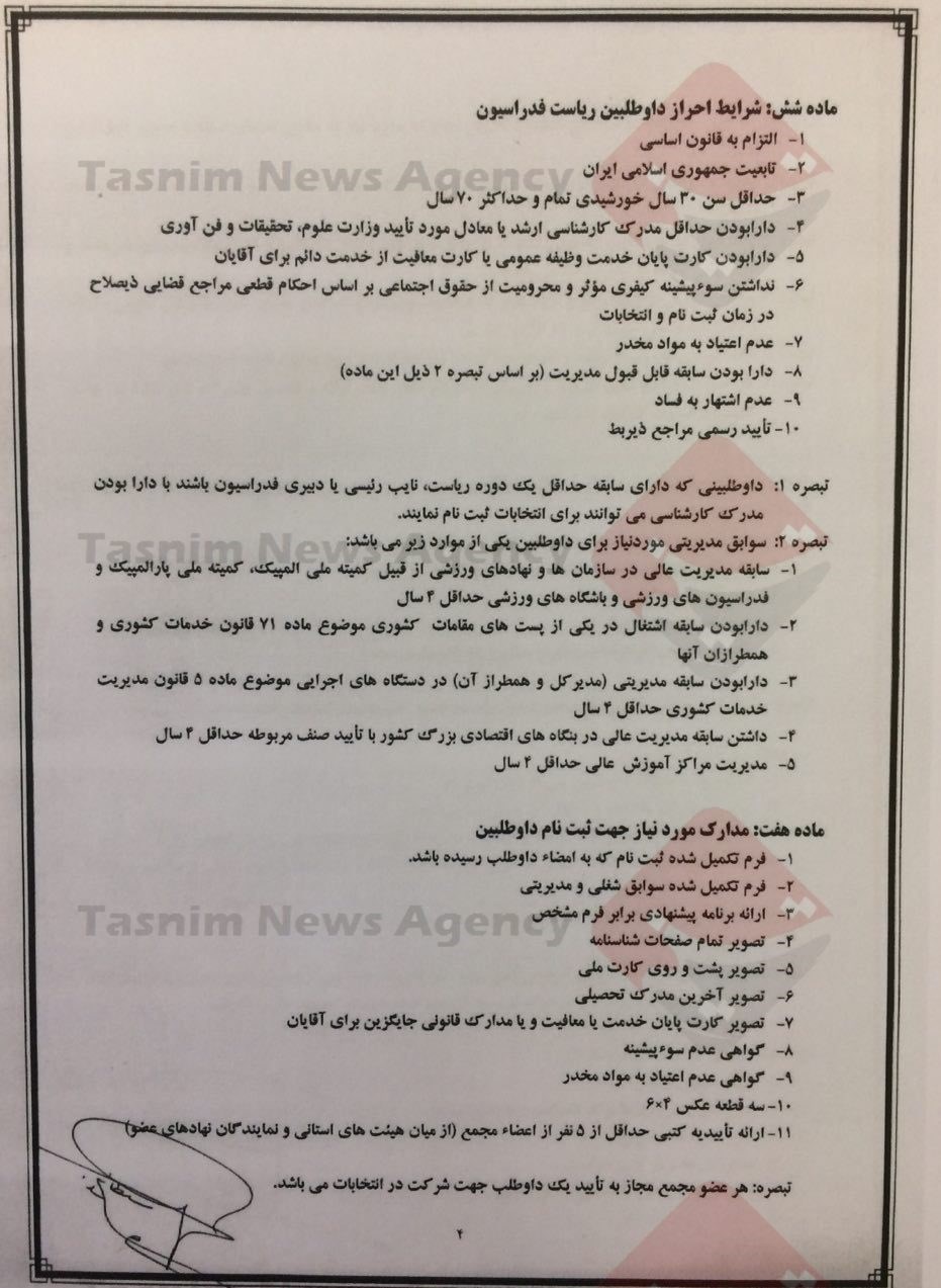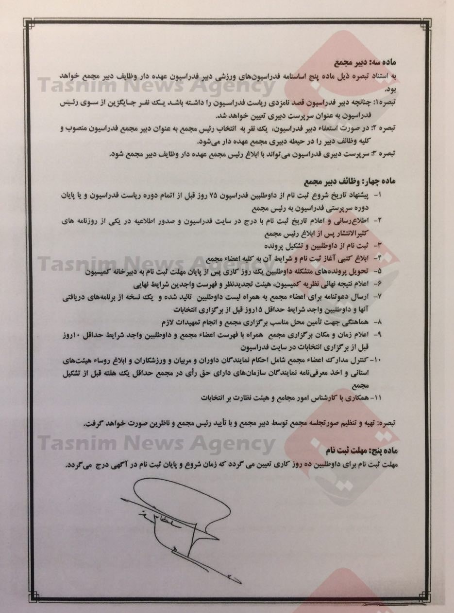 تصاویر آییننامه شرایط احراز و چگونگی انتخاب رئیس فدراسیون در زیر آمده است: