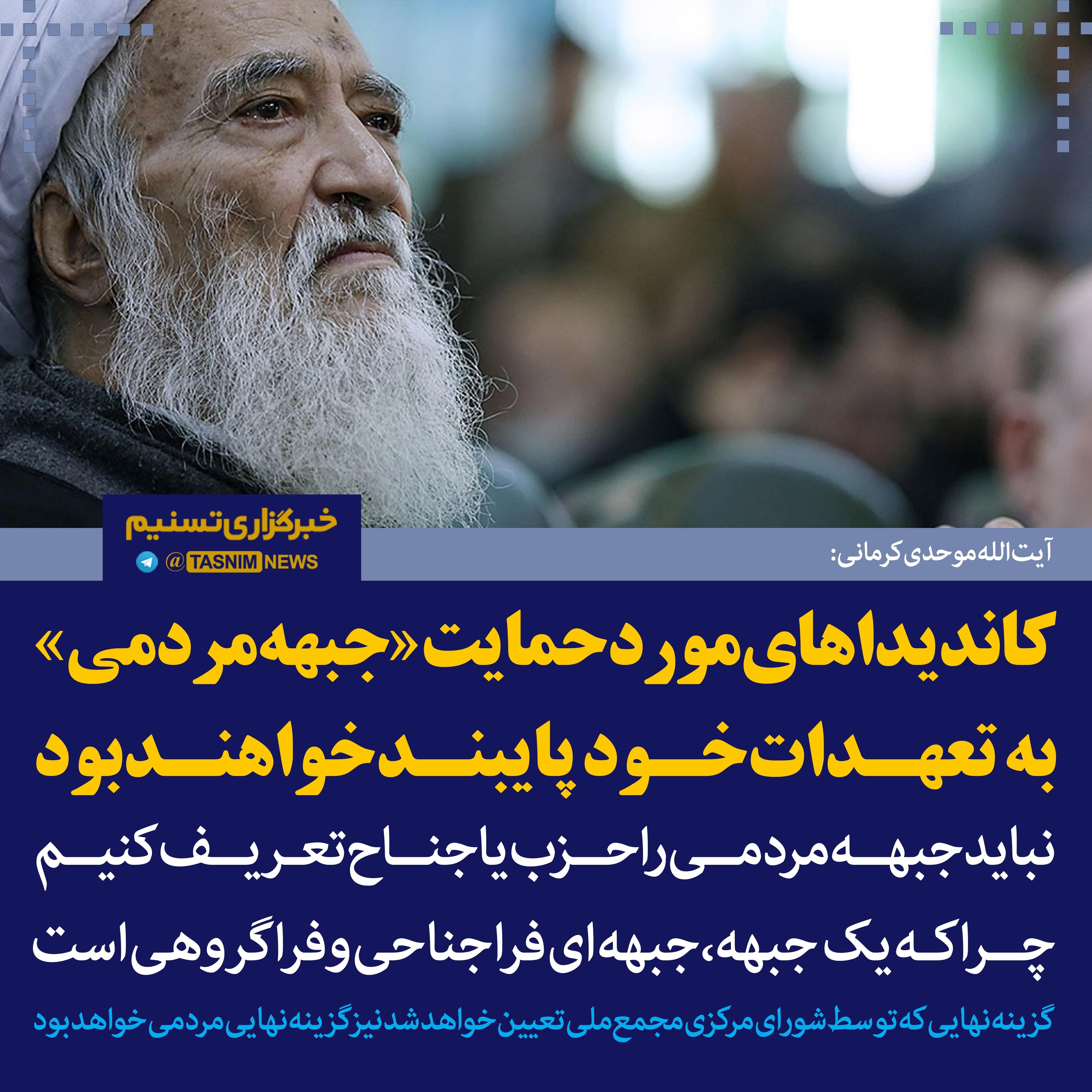 فتوتیتر/آیت الله موحدی کرمانی: کاندیداهای مورد حمایت «جبهه مردمی» به تعهدات خود پایبند خواهند بود
