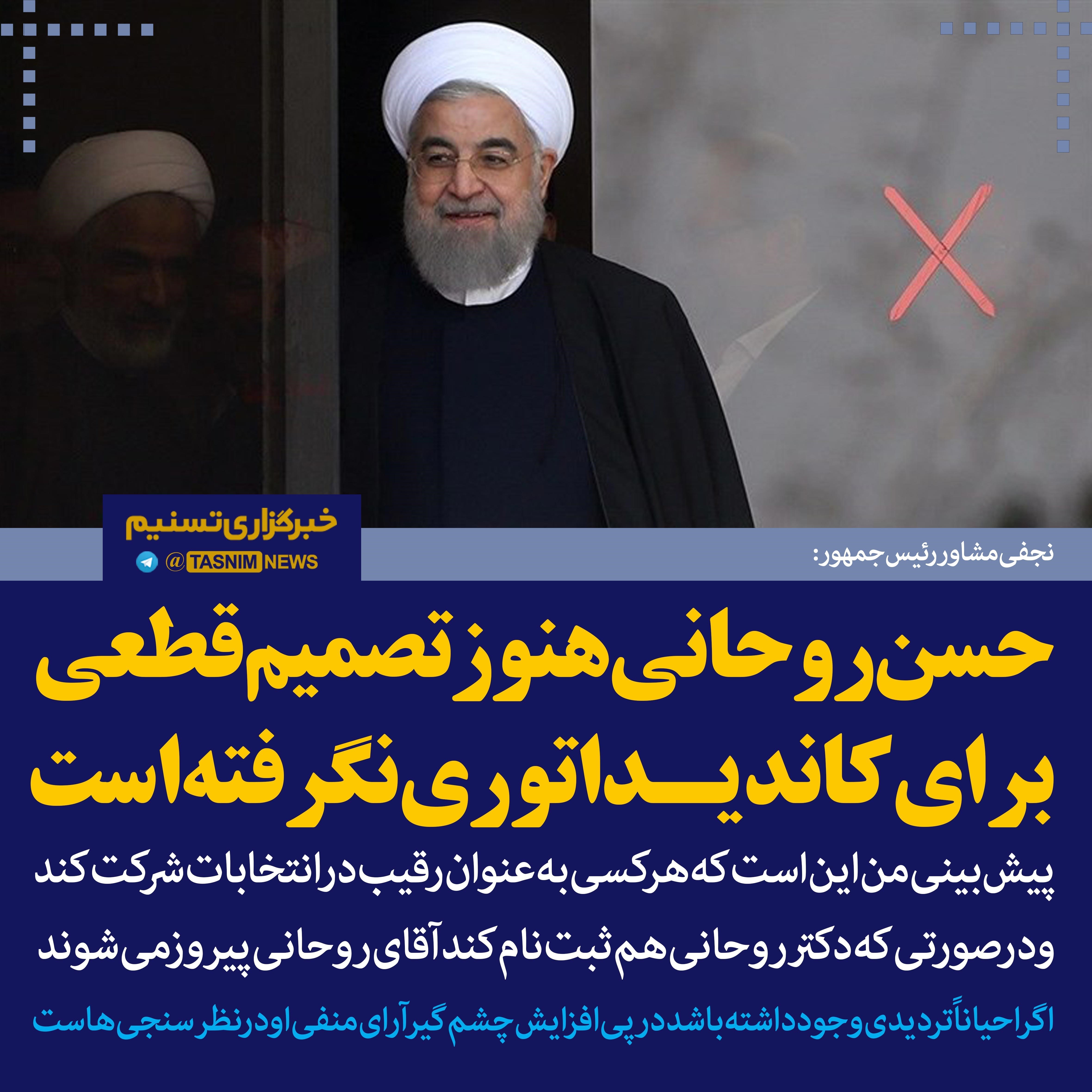 فتوتیتر/نجفی: «حسن روحانی» هنوز تصمیم قطعی برای کاندیداتوری نگرفته است