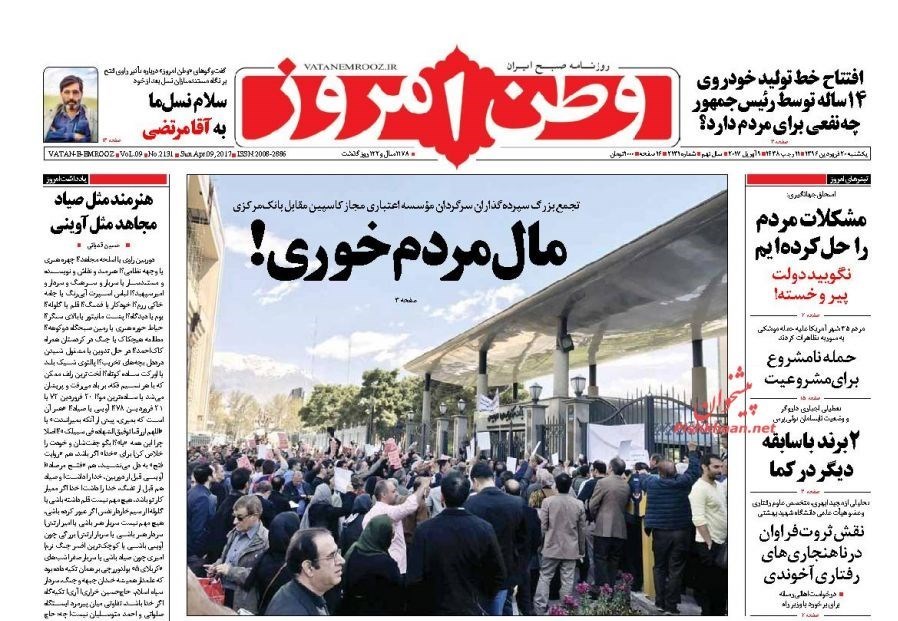 تصاویر صفحه اول روزنامه‌های یکشنبه 20 فروردین