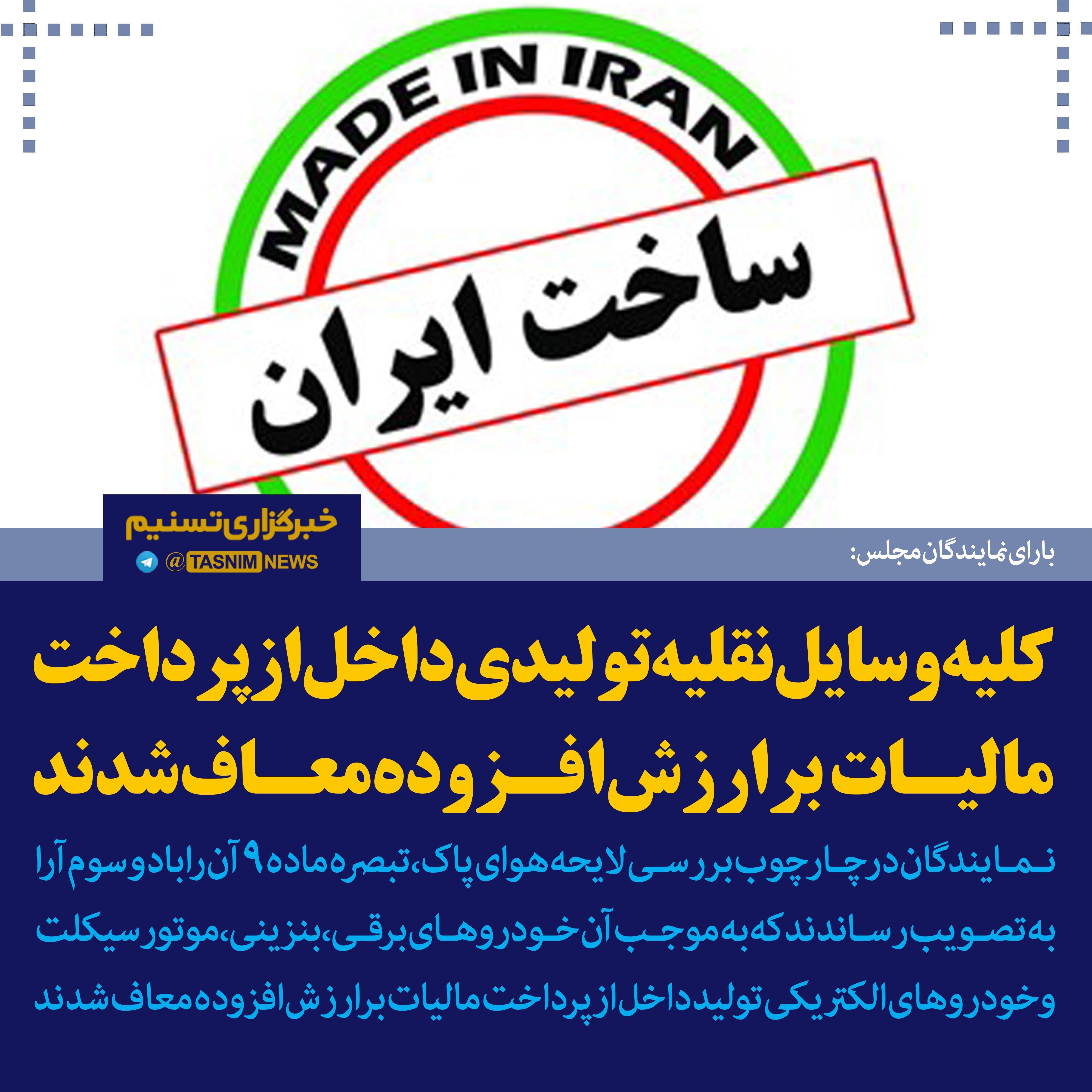 فتوتیتر/کلیه وسایل نقلیه تولیدی داخل با رای نمایندگان از پرداخت مالیات بر ارزش افزوده معاف شدند