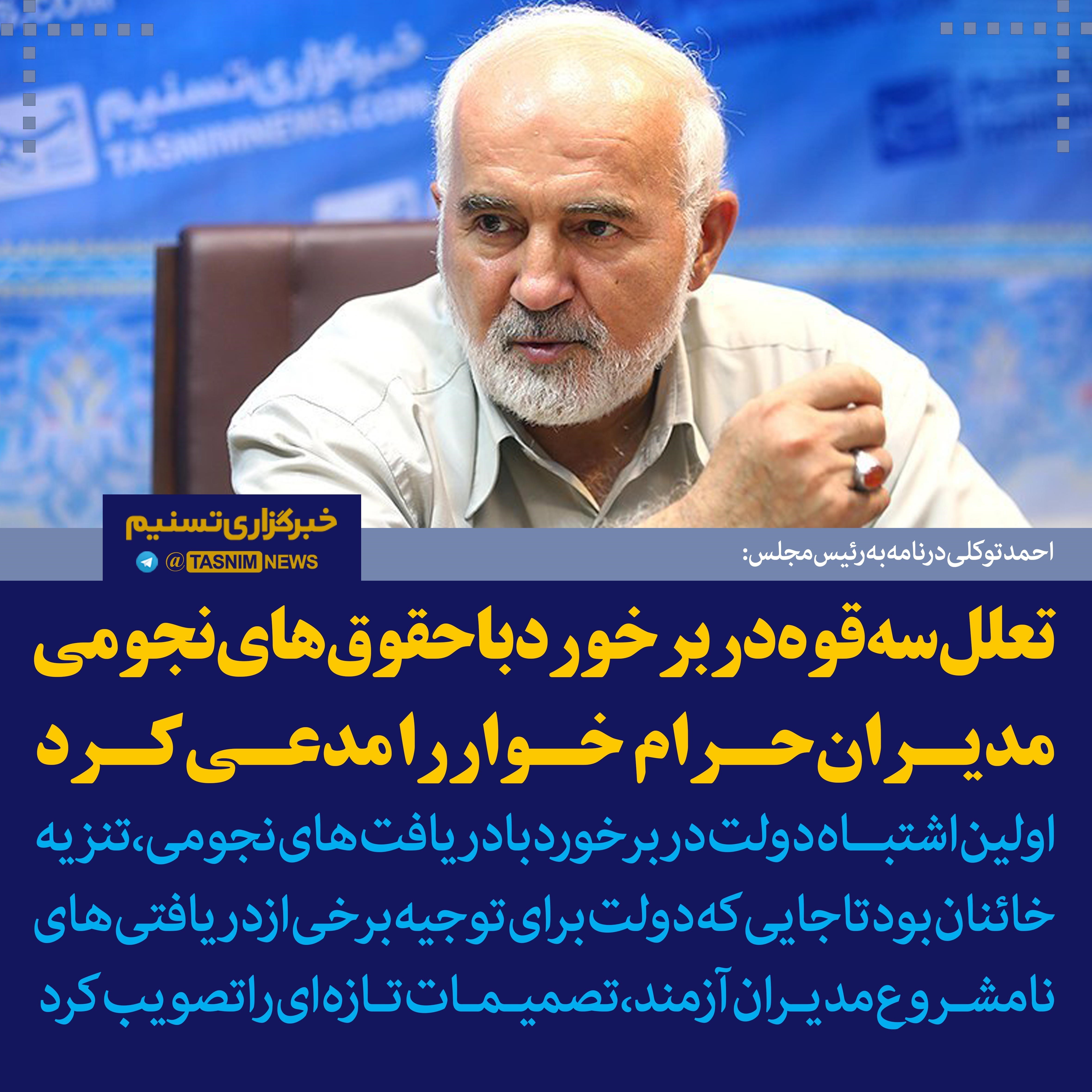فتوتیتر/توکلی: تعلل در برخورد با حقوق های نجومی، مدیران حرامخوار را مدعی کرد
