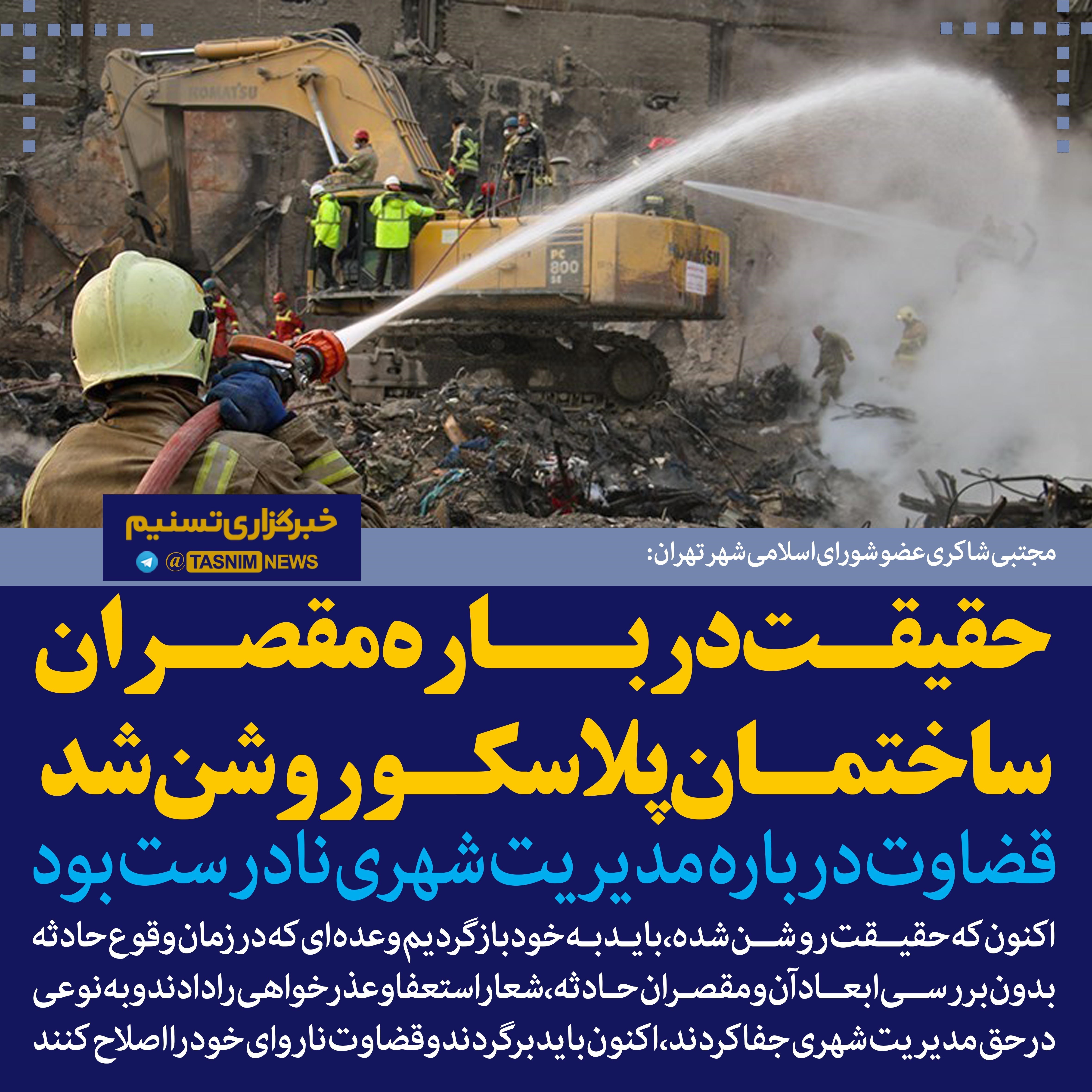 فتوتیتر/شاکری:حقیقت درباره مقصران پلاسکو روشن شد