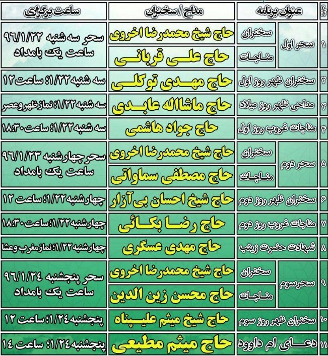 بنا براین گزارش، ویژهبرنامه هایی از سوی معاونت فرهنگی این مسجد و پایگاه مقاومت شهید محمد شکری برای معتکفین در ایام اعتکاف در نظر گرفته شده است که بدین شرح است: