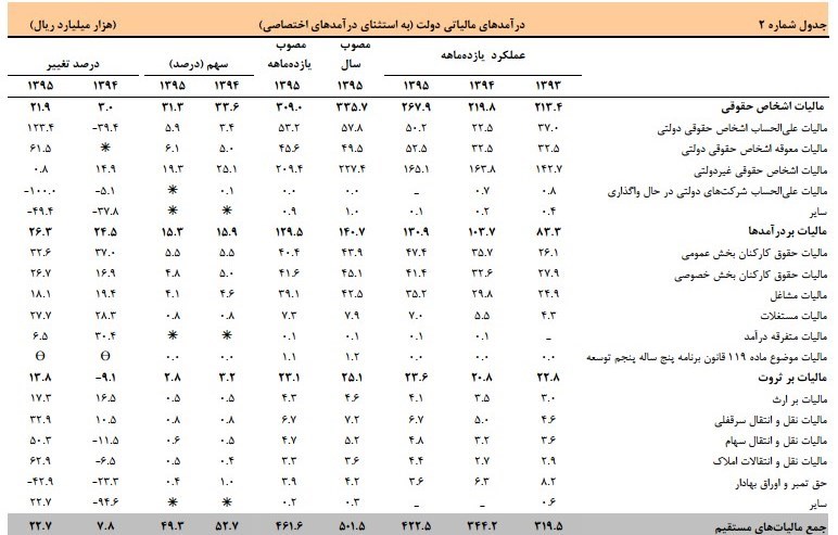 به گزارش خبرنگار اقتصادی باشگاه خبرنگاران پویا؛ دولت در 11 ماهه سال 95، حدود 42 هزار میلیارد تومان، مالیات مستقیم اعم از مالیات بر درآمد، مالیات بر ثروت و مالیات اشخاص حقوقی اخذ شده است. این رقم درحالی بدست آمده که در قانون بودجه 95، مجلس سقف درامد از محل مالیاتهای مستقیم را 50 هزار میلیارد تومانی تعیین کرده بود.