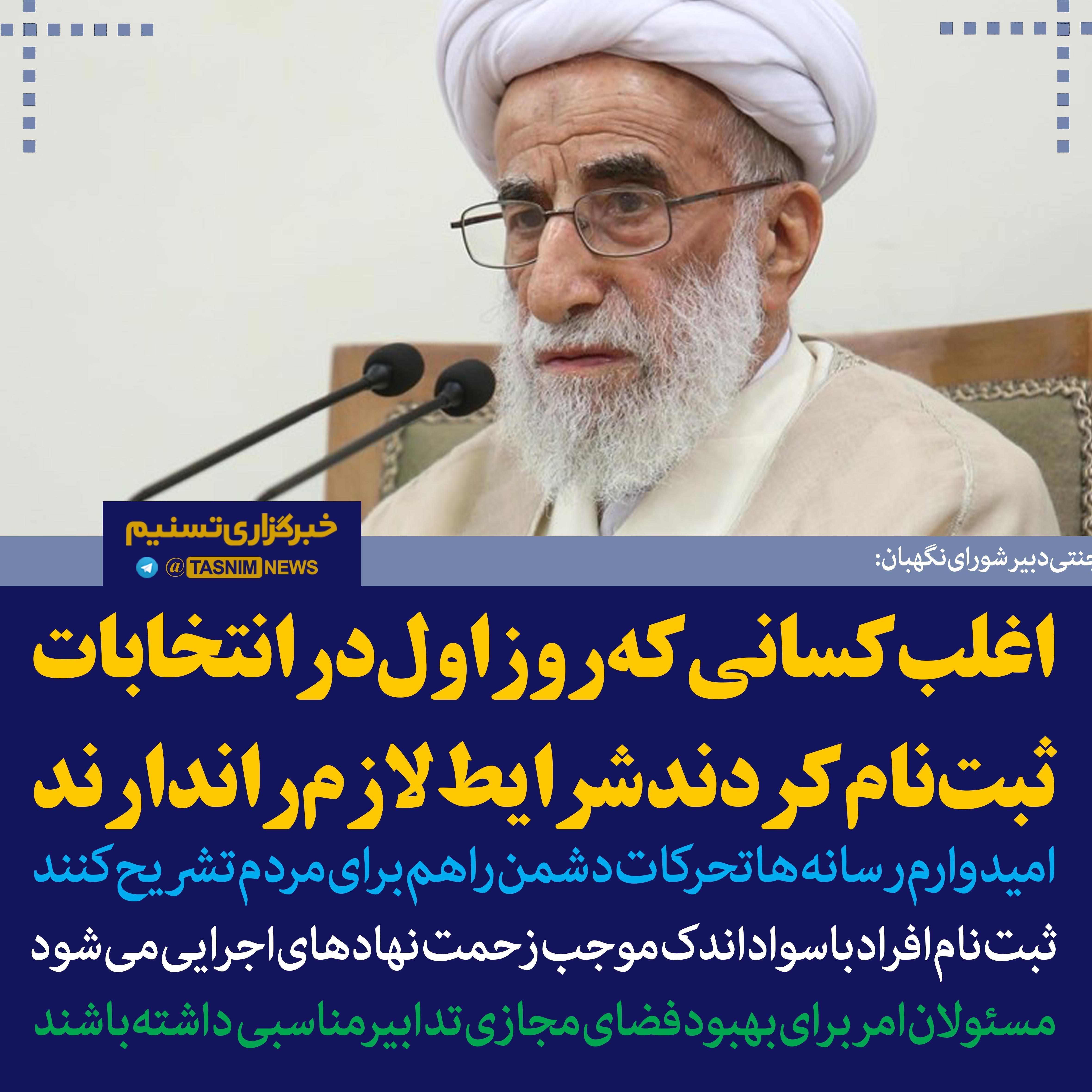 دبیر شورای نگهبان با اشاره به ثبت‌نام داوطلبان انتخابات ریاست‌جمهوری گفت: ثبت‌نام افراد با سواد اندک در انتخابات موجب زحمت نهادهای اجرایی می‌شود.