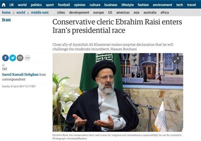 نشریه انگلیسی گاردین نیز در گزارش روز یکشنبه خود درباره انتخابات ریاست جمهوری ایران نوشت که با ورود رقیبی قدرتمند به عرصه رقابتها، ایران انتخاباتی «داغ و تفرقهانداز» در پیش خواهد داشت. این نشریه در بخش دیگری از گزارش خود نوشت که اعلام نامزدی رئیسی برای ریاست جمهوری، تحلیلگران سیاسی ایرانی را درباره نیات وی و اینکه این نامزدی چه معنا و پیامدهایی برای روحانی که به دنبال انتخاب دوباره خود است، سردرگم کرده است. «در حالی که چهار سَلَفِ روحانی دو دوره رئیس جمهوری بودند ... اما نامزدی رئیسی نشانه این است که رئیس جمهوری کنونی مسیر راحتی در پیش نخواهد داشت». (لینک مطلب)