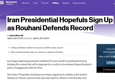 بلومبرگ نیز روز سهشنبه در گزارشی نوشت روحانی هماکنون با ناکامی روبهافزونی در زمینه سیاستهای اقتصادی مواجه شده است، و منتقدان میگویند که (این سیاستها) منفعتی برای فقرا نداشته است. به نوشته این رسانه آمریکایی، این انتخابات مشخص خواهد کردند که آیا ایران به سیاستهای روحانی در عرصه بینالمللی ادامه خواهد یا نه. (لینک مطلب)