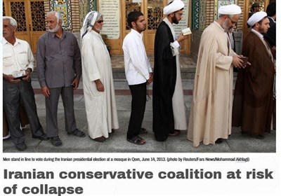 وبگاه تحلیلی المانیتور نیز در مطلبی که روز سهشنبه به قلم یکی از یادداشتنویسانِ ساکنِ ایرانِ آن منتشر شد بر «خطر شکست ائتلاف محافظهکاران ایرانی» مانور داد. در این مطلب نوشته شده است که نامزدهای این ائتلاف حاضر به کنار رفتن به نفع دیگری نیستند. (لینک مطلب)