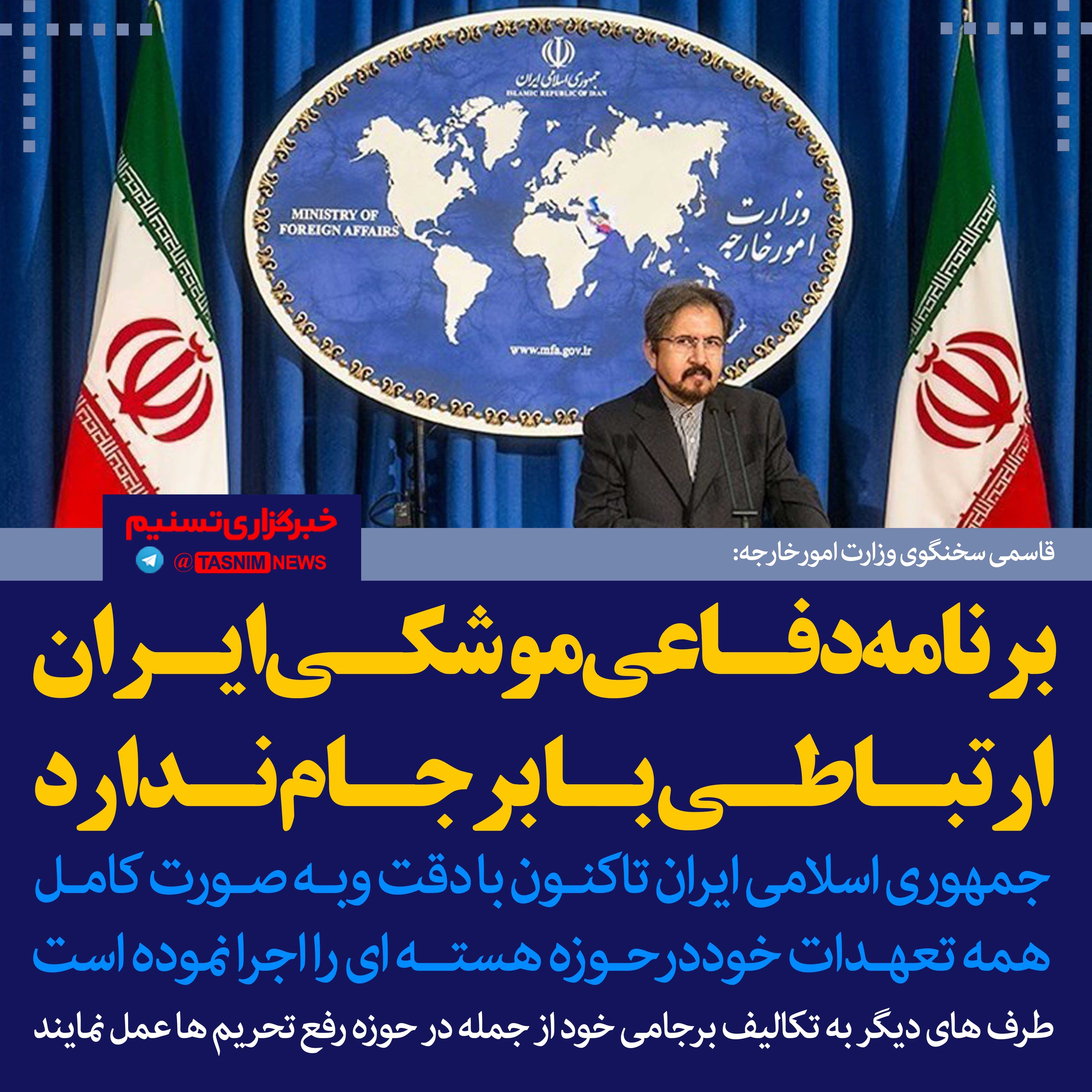 فتوتیتر/قاسمی:برنامه دفاعی موشکی ایران ارتباطی با برجام ندارد